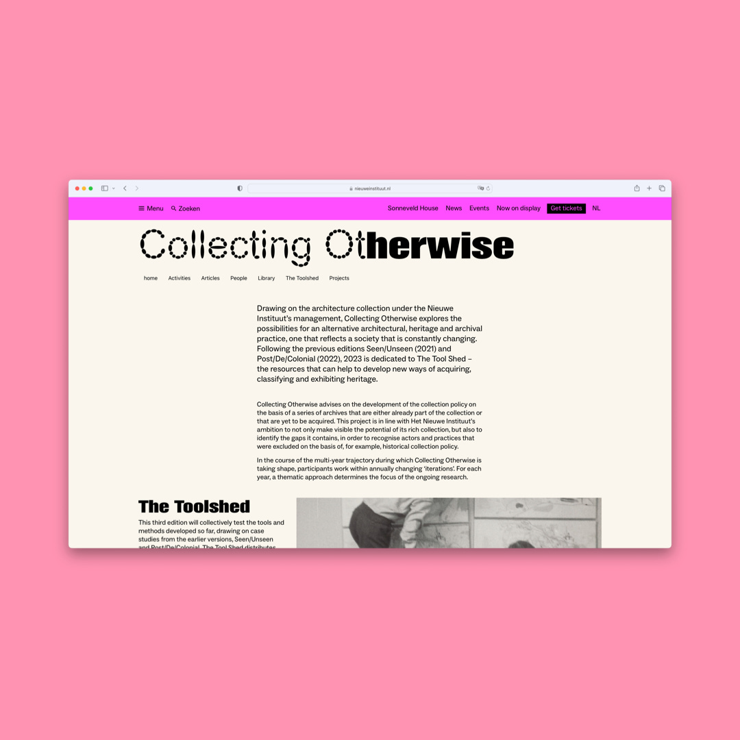 "Drawing on the architecture collection under the Nieuwe Instituut’s management, Collecting Otherwise explores the possibilities for an alternative architectural, heritage and archival practice, one that reflects a society that is constantly changing."