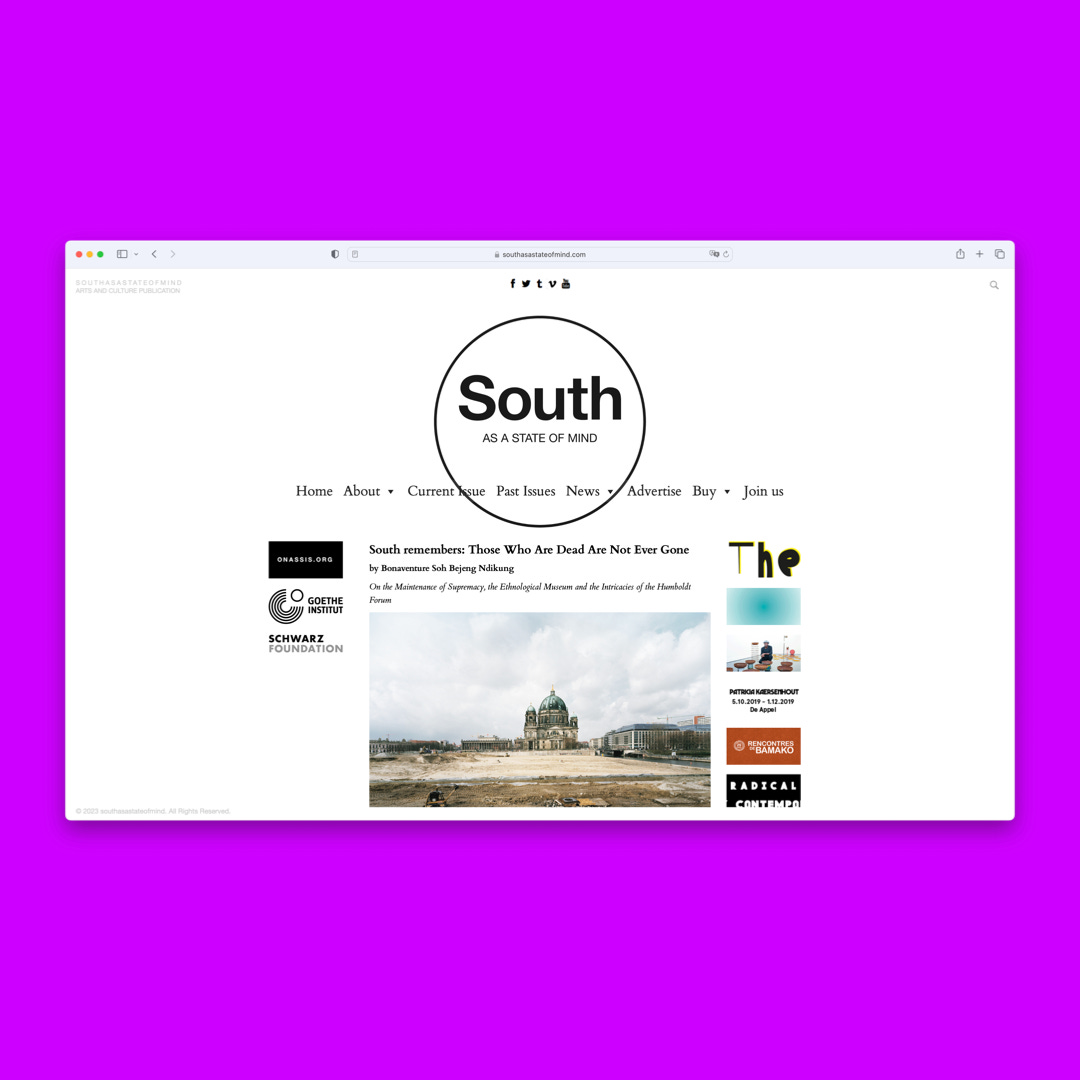 Bonaventure Soh Bejeng Ndikung: Those Who Are Dead Are Not Ever Gone. South as a State of Mind, 10th issue, summer/fall 2018.
